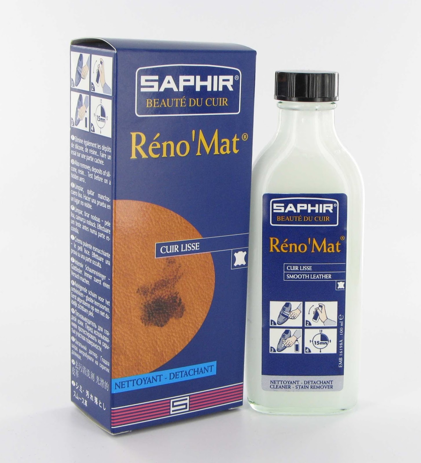 Para las manchas en cuero liso, utilizaremos el Renomat líquido de Saphir. Este es un producto en formato líquido que se presenta en 100ml y sirve para eliminar todo tipo de manchas, en especial aquellas más difíciles, del cuero liso.