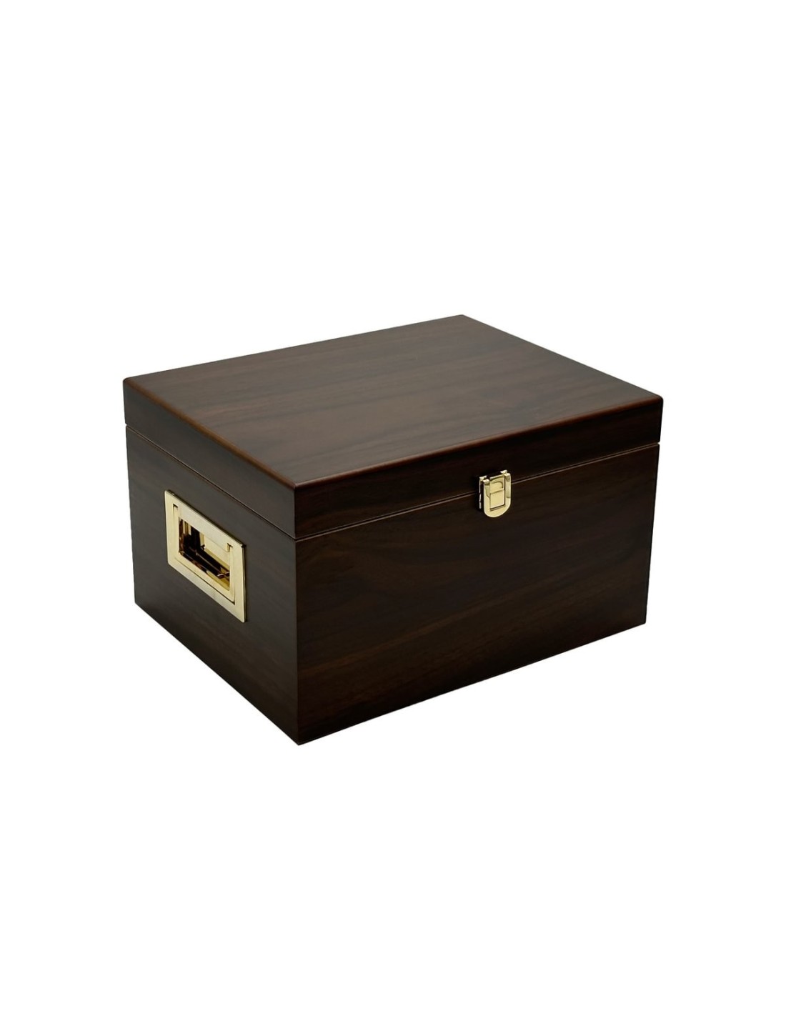 Esta elegante caja tipo valet box está fabricada en madera de nogal con un acabado oscuro y sofisticado, ideal para organizar sus productos para cuidado y limpieza del calzado. Sus herrajes de latón dorado le aportan un toque clásico y distinguido. Cuenta con cierre metálico al frente y asas empotradas a los lados para facilitar su transporte. Su interior amplio permite mantener el orden con estilo, tanto en el hogar como en la oficina. Dimensiones: 275 x 165 mm. Una pieza funcional que también decora.
