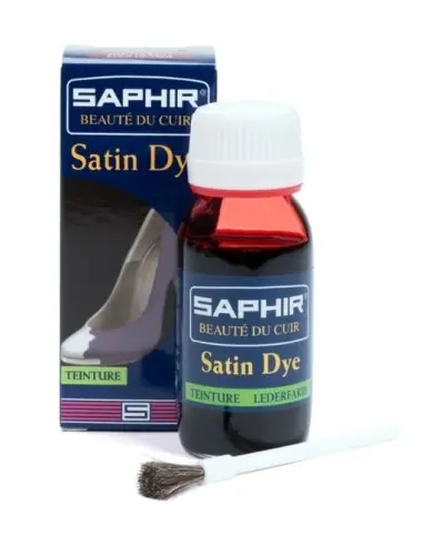 Saphir Satin Dye Producto especialmente diseñado para teñir satén. Para teñir de colores claros a oscuros.Se puede emplear sobre cualquier tipo de accesorio o calzado de satén (con especial uso sobre los artículos de fiesta y boda).Sus colores se pueden mezclar entre sí.La cantidad por bote es para aproximadamente 2 a 3 pares de zapatos de tamaño medio.