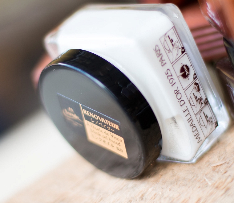 6. Uma vez que o couro esteja completamente seco, polir como de costume usando Saphir Medaille d’Or Pommadier, escolhendo a cor do sapato.
