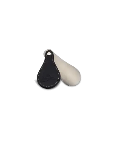Calçadeira especialmente projetada para transportar sem ocupar muito espaço. Feito com metal de alta qualidade e couro preto original.