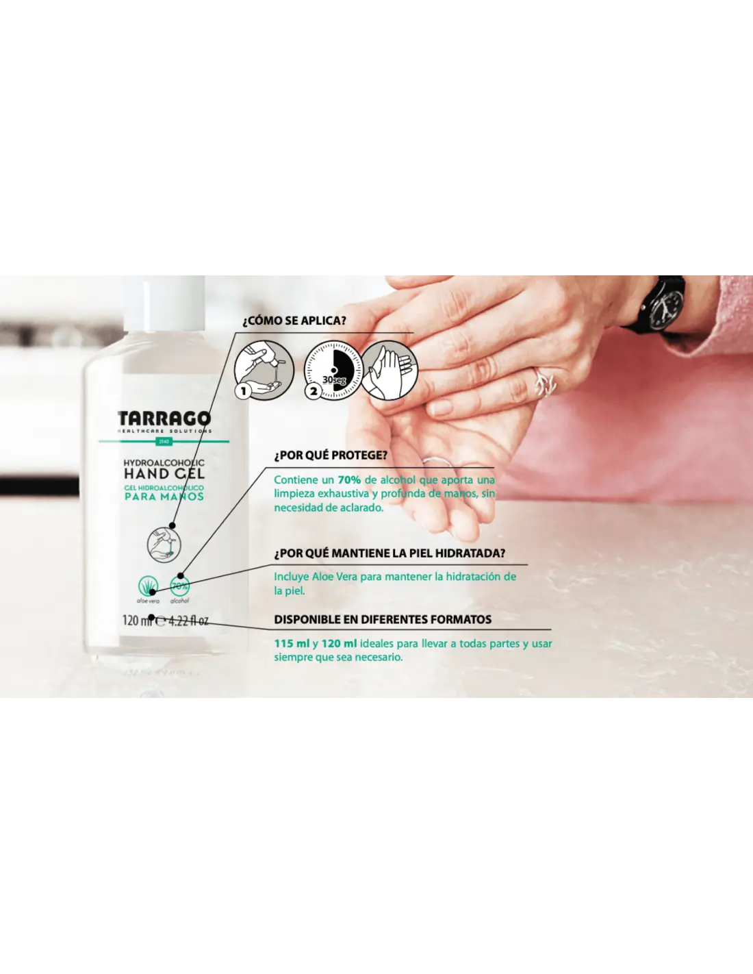 Tarrago gel hidroalcoólico Tarrago limpa as mãos e proporciona uma higiene total. Este gel em formato de 125 ml é