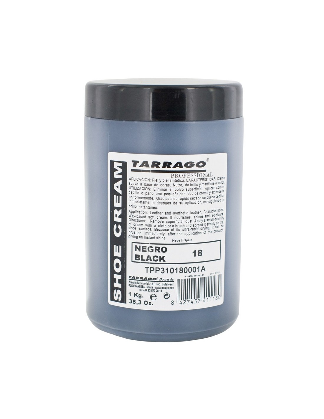 Tarrago Shoe Cream é um creme suave à base de cera que inclui cera de carnaúba, que nutre, mantém, dá brilho e realça a cor.