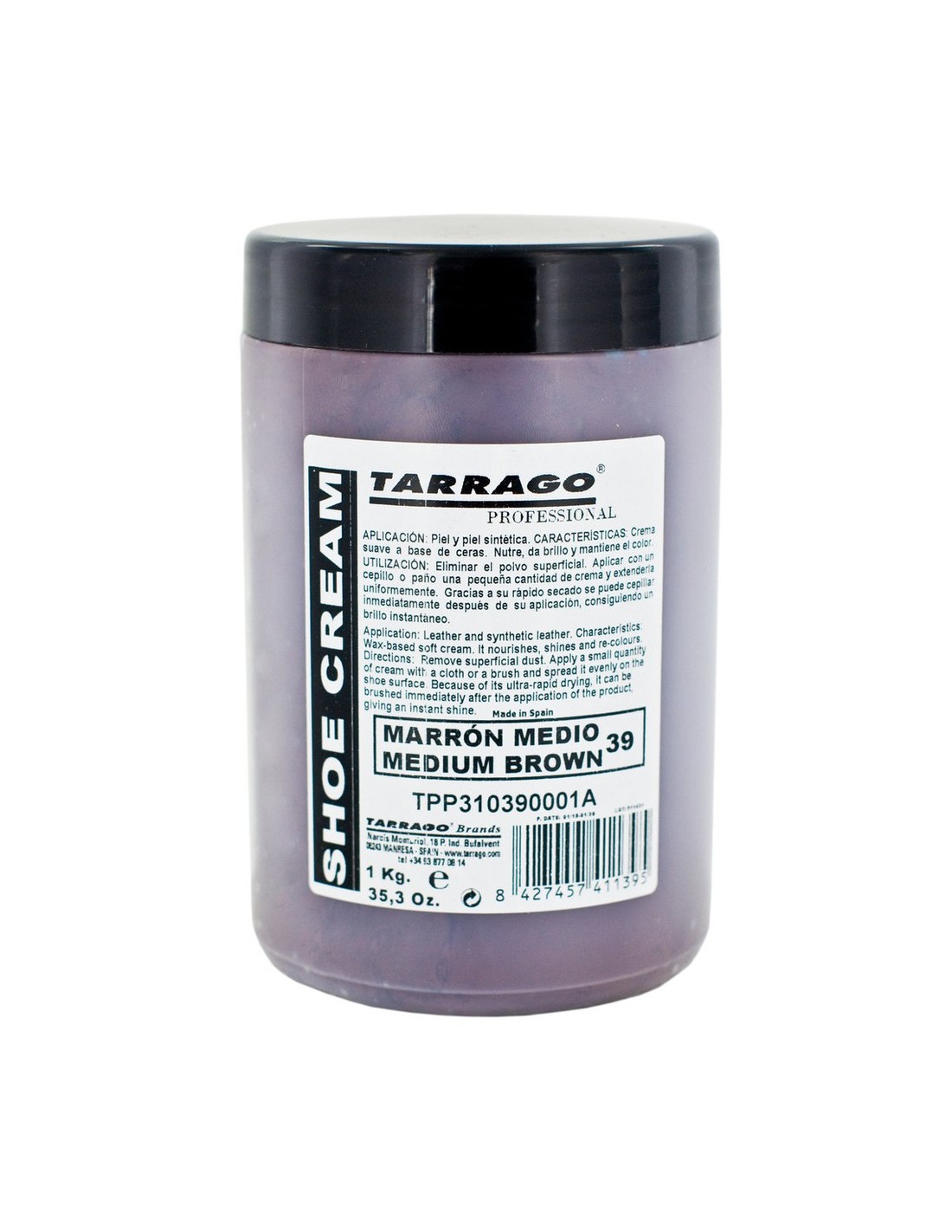 Tarrago Shoe Cream é um creme suave à base de cera que inclui cera de carnaúba, que nutre, mantém, dá brilho e realça a cor.