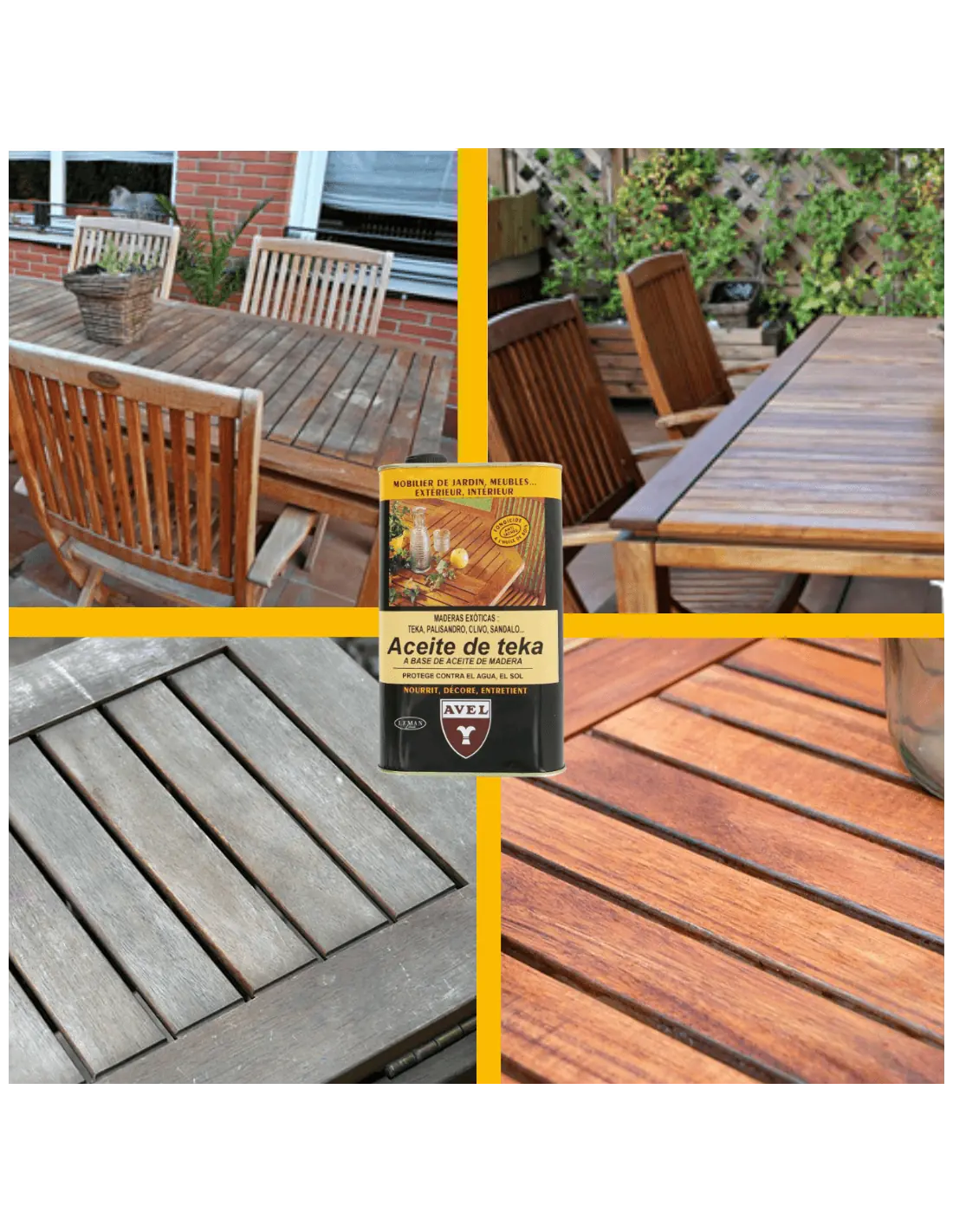 O óleo de teca é um óleo para madeira de teca composto de óleo de linhaça e óleo de madeira chinesa, uma mistura que consegue impregnar a madeira para nutri-la e protegê-la de agentes externos como sujeira, manchas e água.