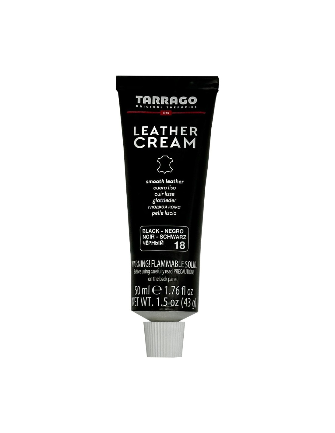 Tarrago Leather Cream Tube é um creme à base de água com solvente, enriquecido com cera de abelha e flúor. Limpa, nutre, dá brilho e mantém a cor do couro liso ou sintético.
