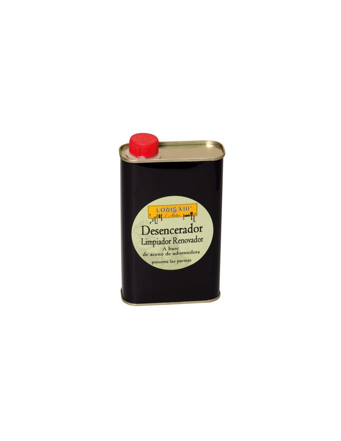 Desencerador Louis XIII 500mlDesencerador de madeiras preciosas, móveis antigos, matérias ...O Desencerador Louis XIII, é feita de madeira e terebintina petróleo, que restaura a sua aparência natural de origem da madeira, preservando o seu patina.O Desencerador Louis XIII, limpa profundamente, removendo todas as camadas de cera e graxa causada por depósitos de sujeira, fumaça ..O Desencerador Louis XIII, contém água, portanto, não obscurecer a madeira.O Desencerador Louis XIII, também pode ser aplicado após a remoção das antigas camadas de verniz ou pintura de stripper Ebanisteria Louis XIII.O Desencerador Louis XIII, contém em sua fórmula, além de óleo de terebintina, madeira e solventes, também contém um inseticida poroso que cuida e protege seus móveis e madeira insetos e carunchos.O Desencerador Louis XIII, também remove manchas de água, espírito ... também a remoção de manchas causadas pelo tabaco ou pó.O Louis XIII, Desencerador usado em qualquer período ou estilo de móveis, madeiras preciosas, trabalhos em madeira, vigas rústicas, parquet de idade ...MODO DE EMPREGO:Para uso geral, agitar a lata de desencerador e impregnar um pano de algodão e esfregue diretamente sobre a madeira. Alterar pano quando muito untada. Deixe secar e polonês.Para uma renovação completa da superfície, aplicar desencerador Louis XIII com um pincel, insistindo molduras e aguarde alguns minutos e remover resíduos de cera ou gordura de lã de imersão Aço Louis XIII No. 0 e esfregue a madeira até que eles têm removido depósitos de cera velhas e manchas. Após dissolução e antes que eles tenham tempo para secar, remover detritos com pavio de algodão Louis XIIIComo parte do mobiliário com molduras, o uso de Louis XIII Tampico escova facilita a aplicação de desencerador.Para remover manchas difíceis, use palha de aço No. 0000 e deixar secar e aplicar a cera de luxo Louis XIII pelas suas qualidades nutricionais e de proteção, manter uma aparência perfeita e manter a condição da madeira ao longo dos anos.Para uma patina antiquário cor inigualável, aplique uma vez concluído o processo de limpeza com desencerador, pasta de cera Louis XIII Tintante ou cera líquida Tintante Louis XIII no tom escolhido.