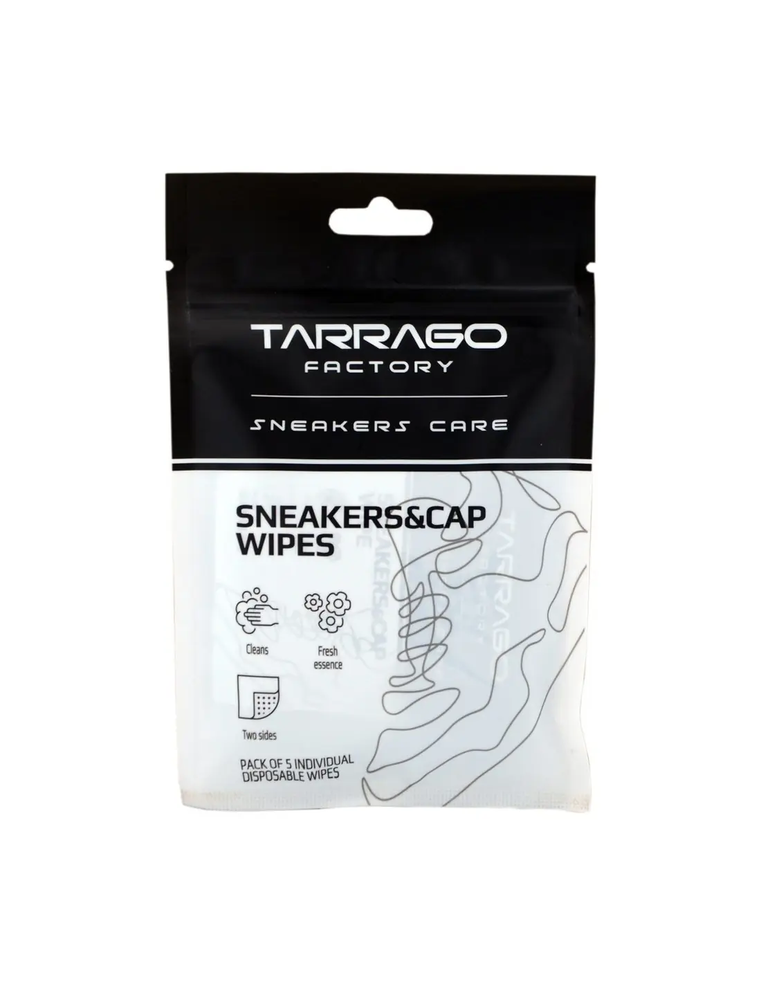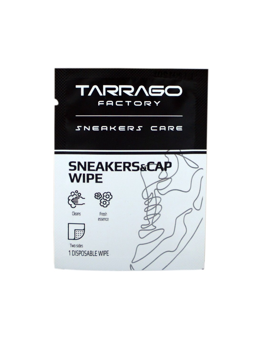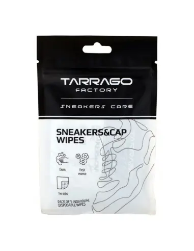 Tarrago Sneakers Wipes & Cap são toalhetes de limpeza perfumados para remover a sujeira de seus sapatos e bonés instantaneamente. Para couro liso, couro sintético, lona e vinil. Pacote especialmente projetado para ser transportado confortavelmente no bolso, bolsa, mochila ou mala. Fácil de aplicar, você pode usá-los no trabalho, depois de praticar esportes, na rua ou na estrada.