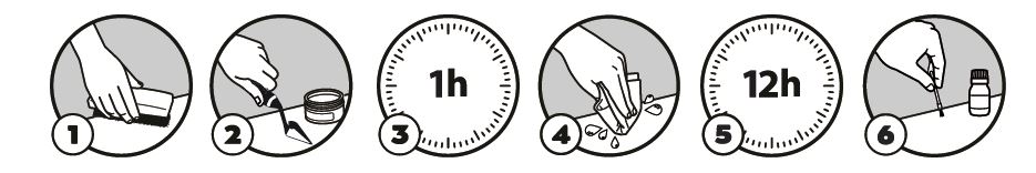 6. Uma vez que a superfície esteja completamente seca, pode ser pintada com Tarrago Color, Tarrago Sneakers Paint ou Tarrago Quick Color para um acabamento perfeito e