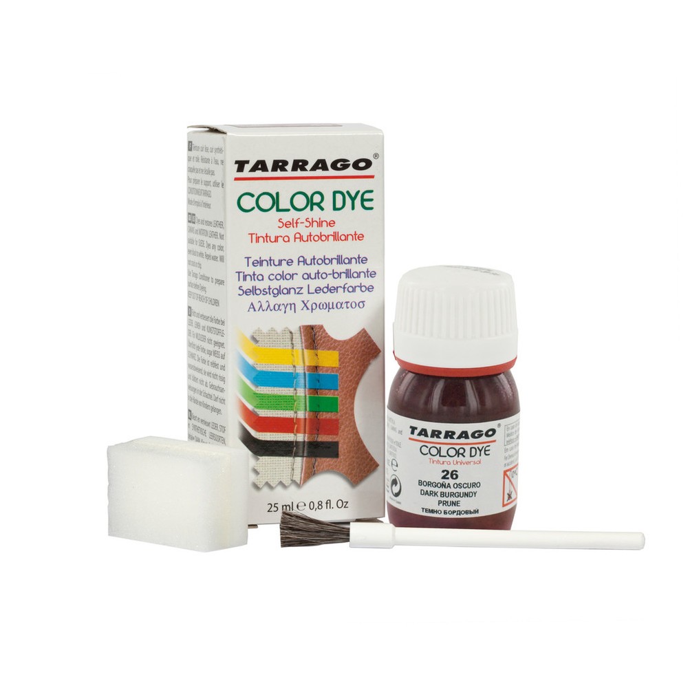 Tinta couro Tarrago Color Dye, ideal para restaurar, renovar ou mudar a cor de couro liso, polipele e materiais sintéticos. Cobertura total e duradoura.