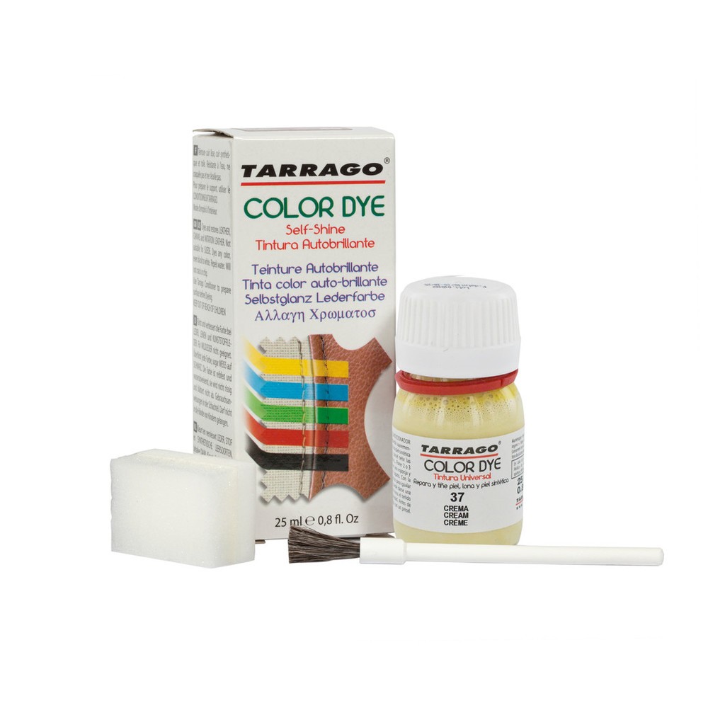 Tinta couro Tarrago Color Dye, ideal para restaurar, renovar ou mudar a cor de couro liso, polipele e materiais sintéticos. Cobertura total e duradoura.