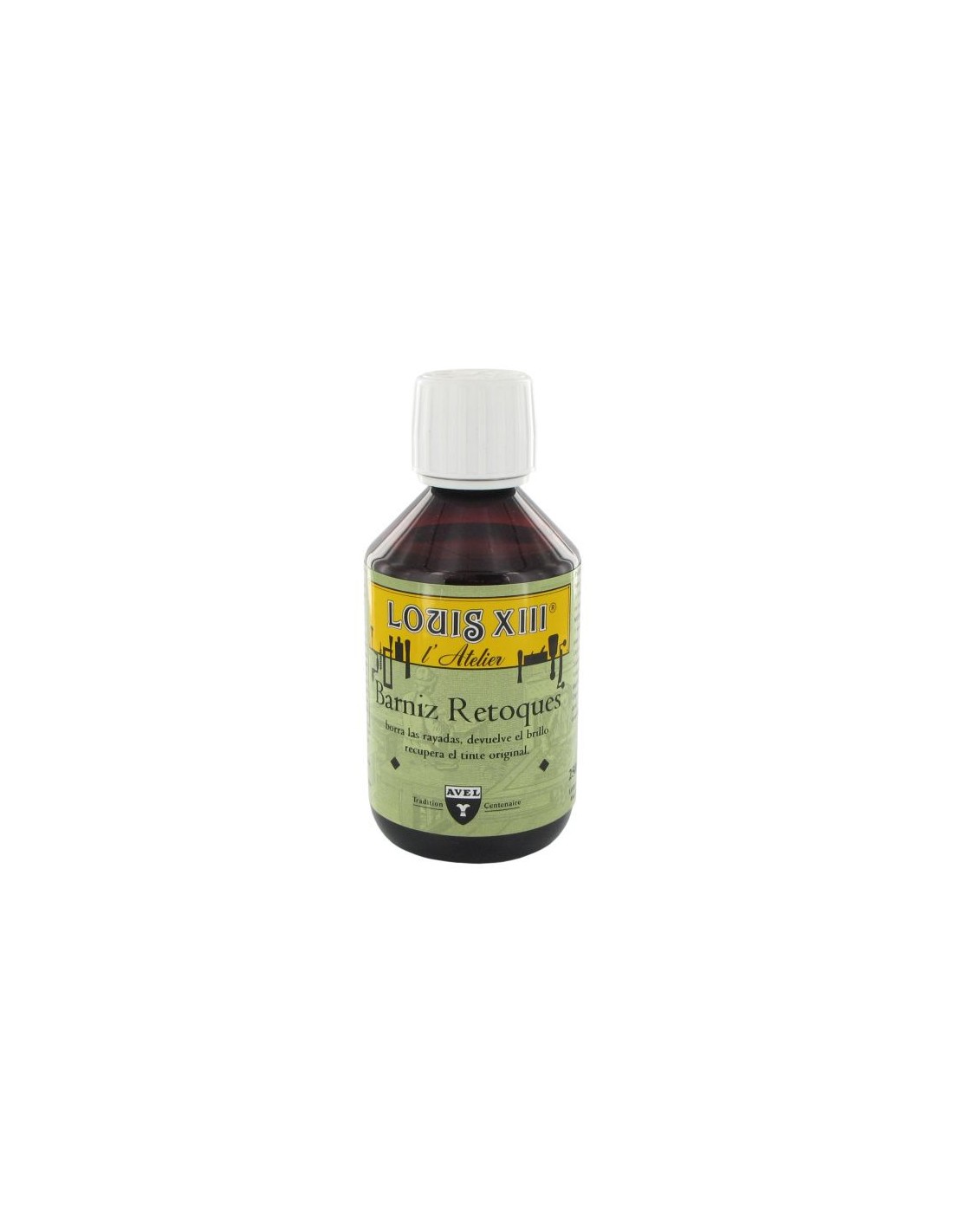 Verniz de Retoque LOUIS XIII 250ml.Verniz de retoque móveis e madeira envernizada.Verniz de Retoque Louis XIII, apagar listrado devolve o brilho e recupera o corante originais.Louis XIII retoque verniz é usado em móveis e todas as madeiras envernizadas sofrer arranhões e desaparecer com o passar do tempo, os efeitos do sol e da lua.Louis XIII retoque verniz apagados listras e vernizes rapidamente voltou ao seu brilho, bem como recuperar o corante original, sem decapagemRetoque verniz contém butanol e terebintinaRetoque verniz impede a restauração completa de um verniz desgastadoUSO:Lixe levemente o verniz, com lã de aço No. 0000 LOUIS XIII.Se o verniz tinha sido encerado antes, usando então a DESENCERADOR LOUIS XIIIEspanando e agitar o frasco durante 15 segundos, em seguida, aplicar o verniz mexer com uma escova lisa, limpa e flexível.Dê uma camada muito fina e uniforme de verniz de retoque e deixe secar 6 horas; Se necessário, repita a operaçãouma temperatura de aplicação ambiente entre 18 e 20 ° C é recomendável.Se o verniz é realmente quebrado, você deve restaurar completamente.