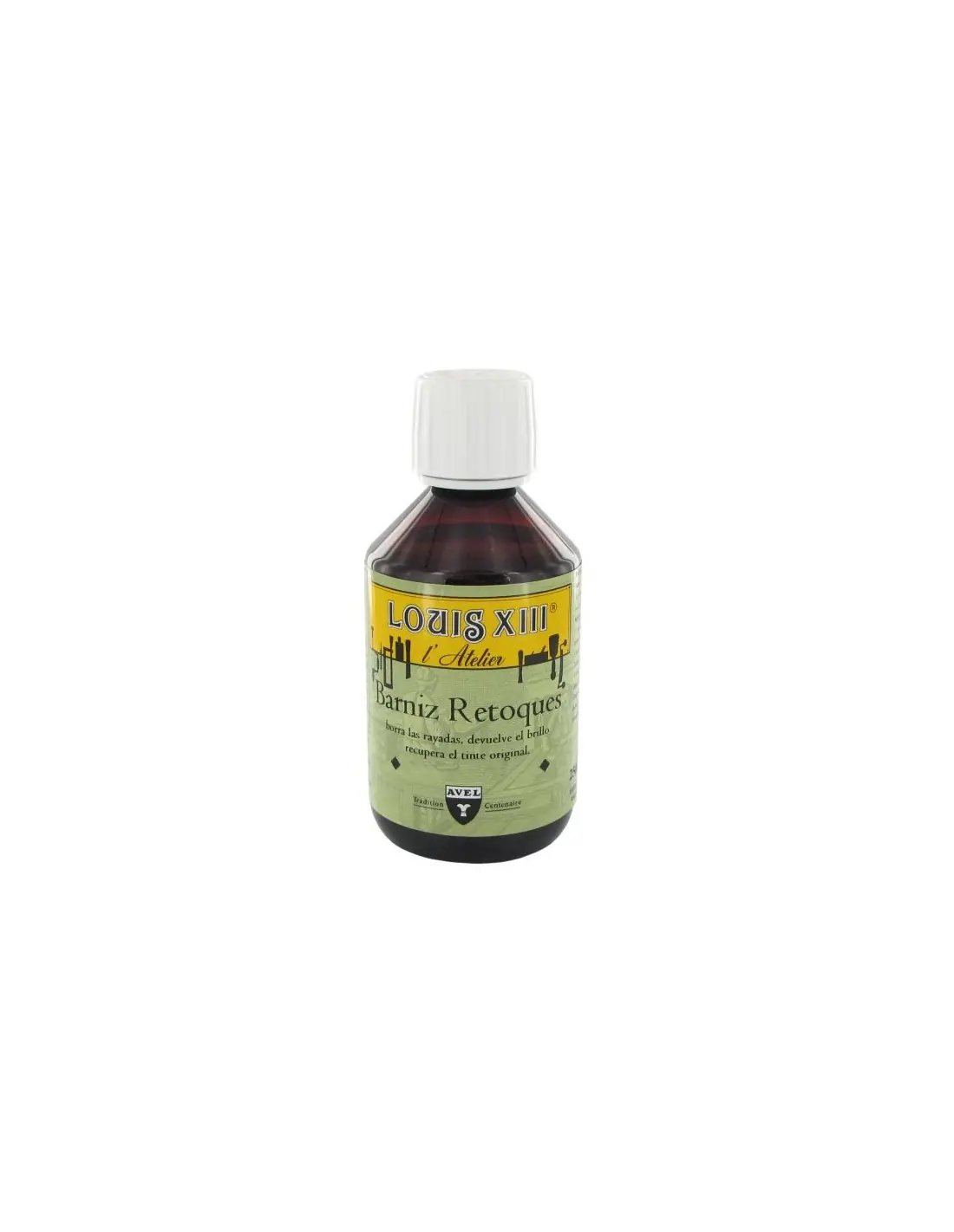 Verniz de Retoque LOUIS XIII 250ml.Verniz de retoque móveis e madeira envernizada.Verniz de Retoque Louis XIII, apagar listrado devolve o brilho e recupera o corante originais.Louis XIII retoque verniz é usado em móveis e todas as madeiras envernizadas sofrer arranhões e desaparecer com o passar do tempo, os efeitos do sol e da lua.Louis XIII retoque verniz apagados listras e vernizes rapidamente voltou ao seu brilho, bem como recuperar o corante original, sem decapagemRetoque verniz contém butanol e terebintinaRetoque verniz impede a restauração completa de um verniz desgastadoUSO:Lixe levemente o verniz, com lã de aço No. 0000 LOUIS XIII.Se o verniz tinha sido encerado antes, usando então a DESENCERADOR LOUIS XIIIEspanando e agitar o frasco durante 15 segundos, em seguida, aplicar o verniz mexer com uma escova lisa, limpa e flexível.Dê uma camada muito fina e uniforme de verniz de retoque e deixe secar 6 horas; Se necessário, repita a operaçãouma temperatura de aplicação ambiente entre 18 e 20 ° C é recomendável.Se o verniz é realmente quebrado, você deve restaurar completamente.